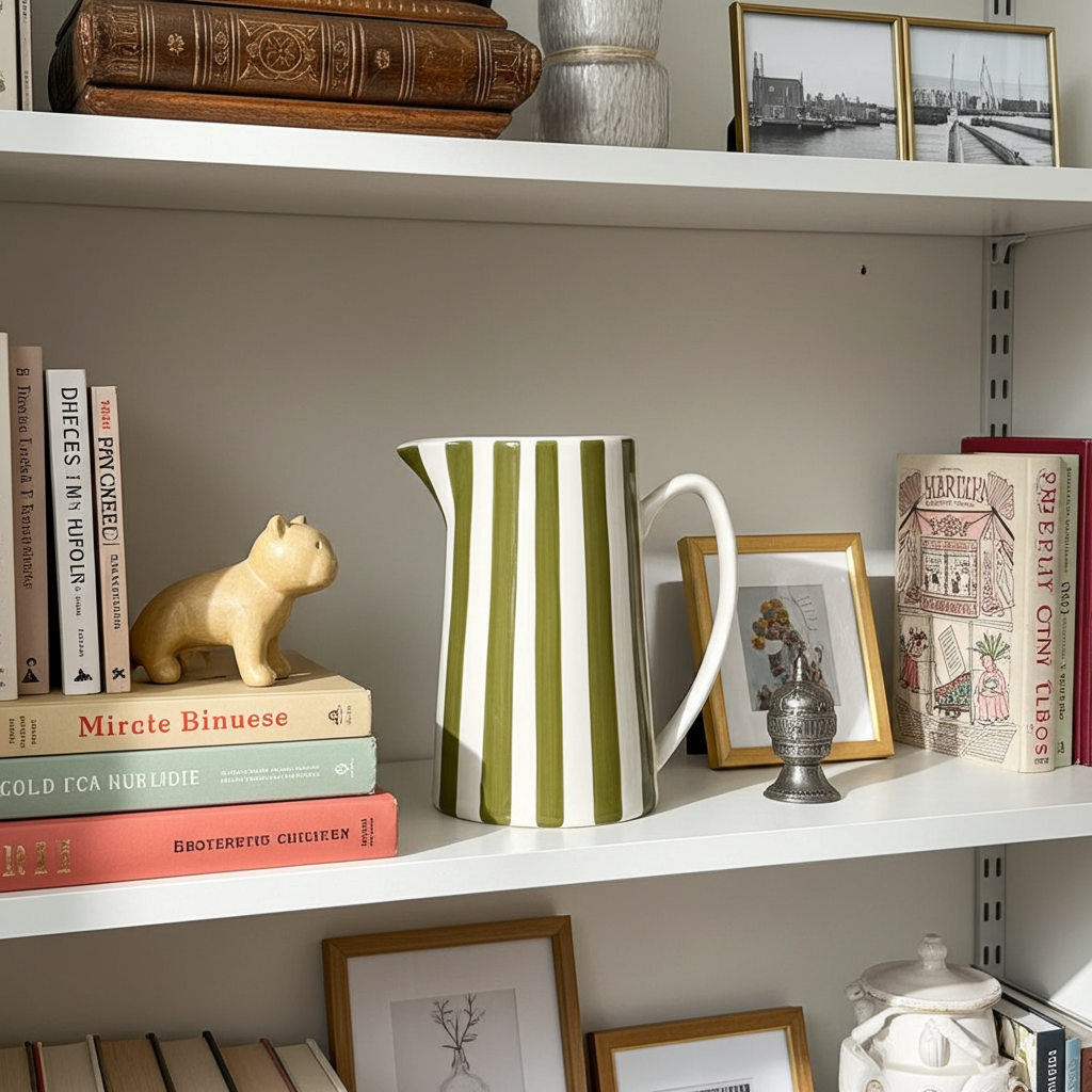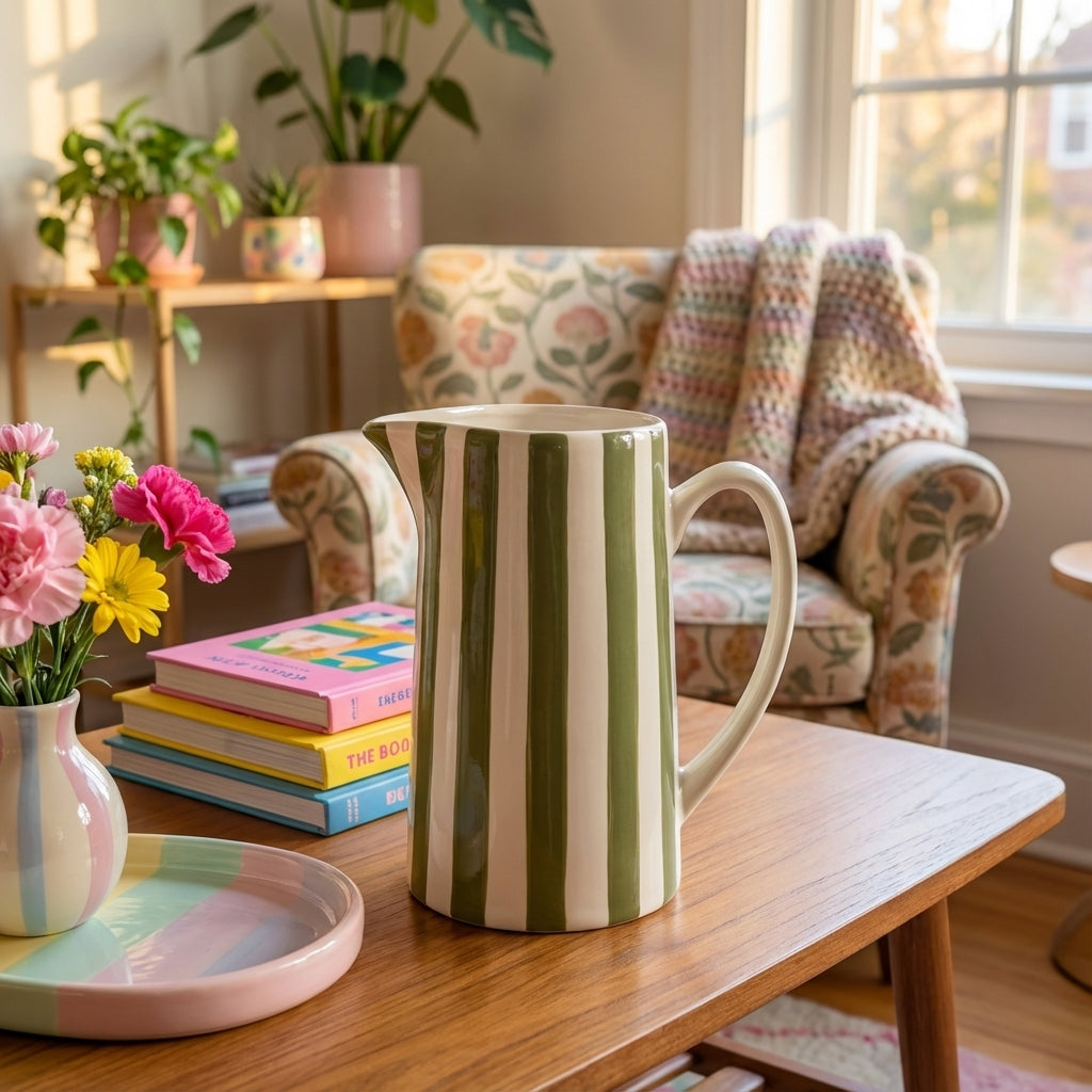 Finies les carafes sans âme ! Avec la carafe rayée vert kaki, chaque repas devient un vrai défilé de style rétro-chic. Son look graphique et sa couleur tendance en font une pièce maîtresse de votre décoration de table.